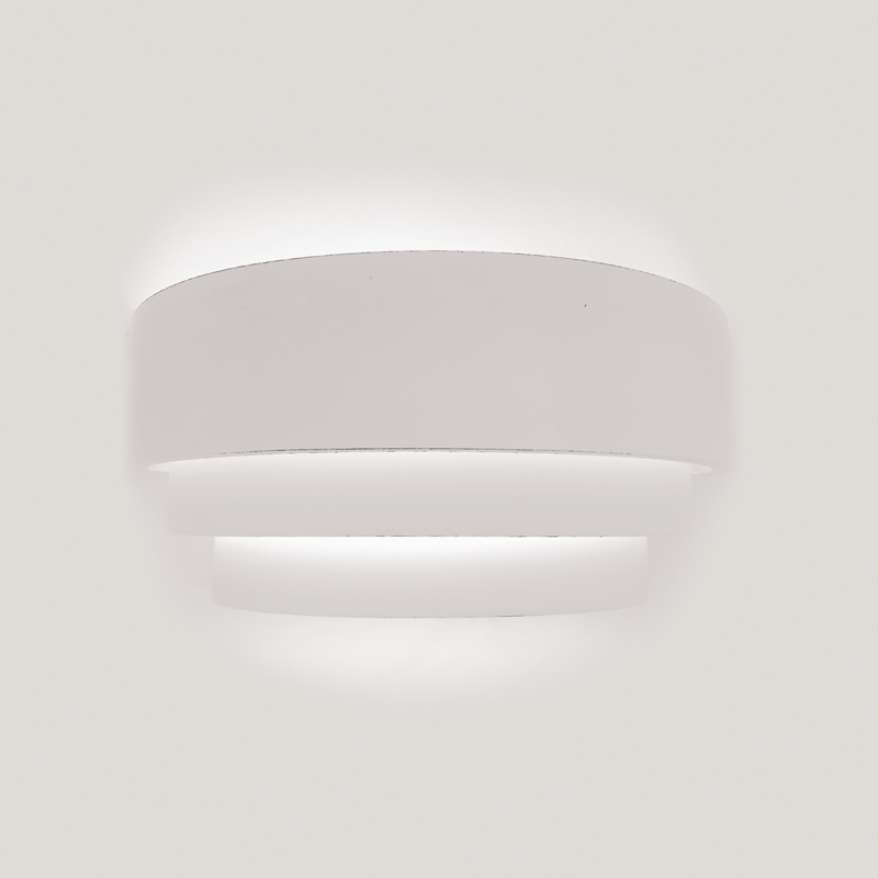 Απλίκα τοίχου με φωτισμό διπλής κατεύθυνσης προς τα πάνω και προς τα κάτω από γύψο σε λευκό χρώμα.