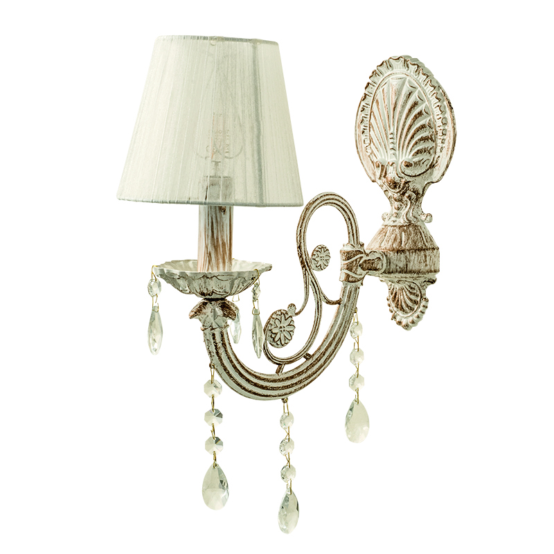 Κλασικό επιτοίχιο φωτιστικό μεταλλικό σε μπεζ πατίνα με διακοσμητικά κρύσταλλα.
