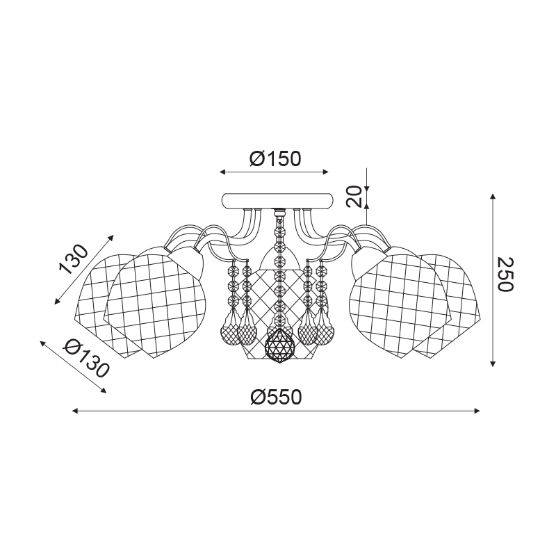 ΦΩΤΙΣΤΙΚΟ ΟΡΟΦΗΣ 5ΧΕ27 ΜΕΤΑΛΛΟ ΠΑΤΙΝΑ+ΓΥΑΛΙ+ΚΡΥΣΤΑΛΛΑ Φ55ΧΗ22,5CM OPORTO