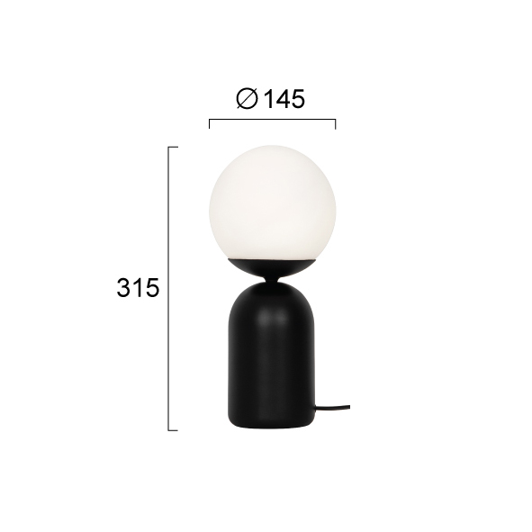Φωτιστικό Επιτραπέζιο Μαύρο με γυάλινη λευκή οπαλίνα μπάλα Erietta της εταιρίας VIOKEF.