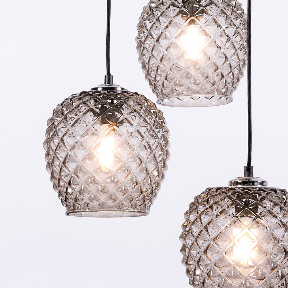 Φωτιστικό κρεμαστό 3 φώτα στρόγγυλο με γκρί γυαλί 20cm σε χρώμιο απόχρωση