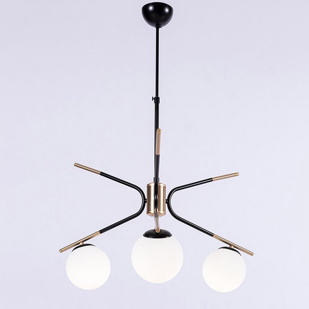 Φωτιστικό κρεμαστό 3 φώτα με οπάλ γυαλί σε μαύρο χρώμα με χρυσό