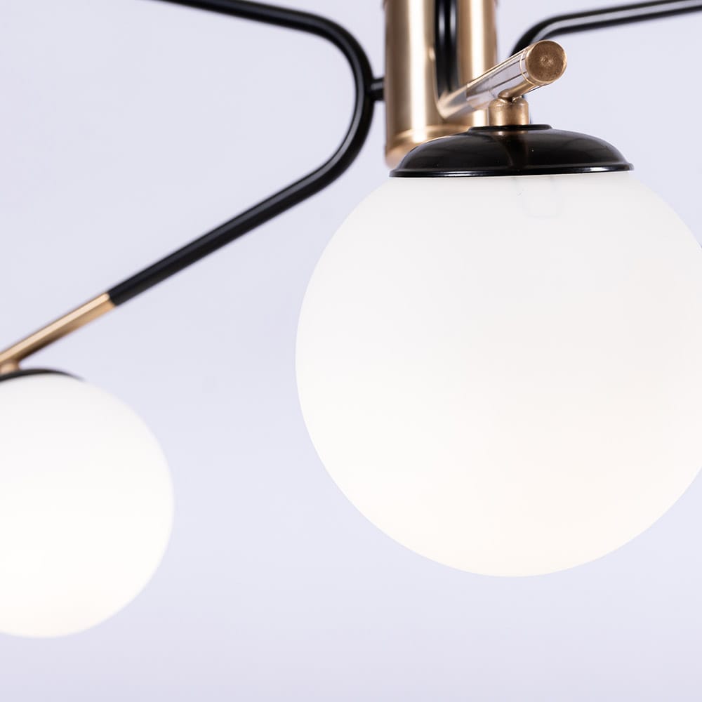Φωτιστικό κρεμαστό 6 φώτα με οπάλ γυαλί σε μαύρο χρώμα με χρυσό