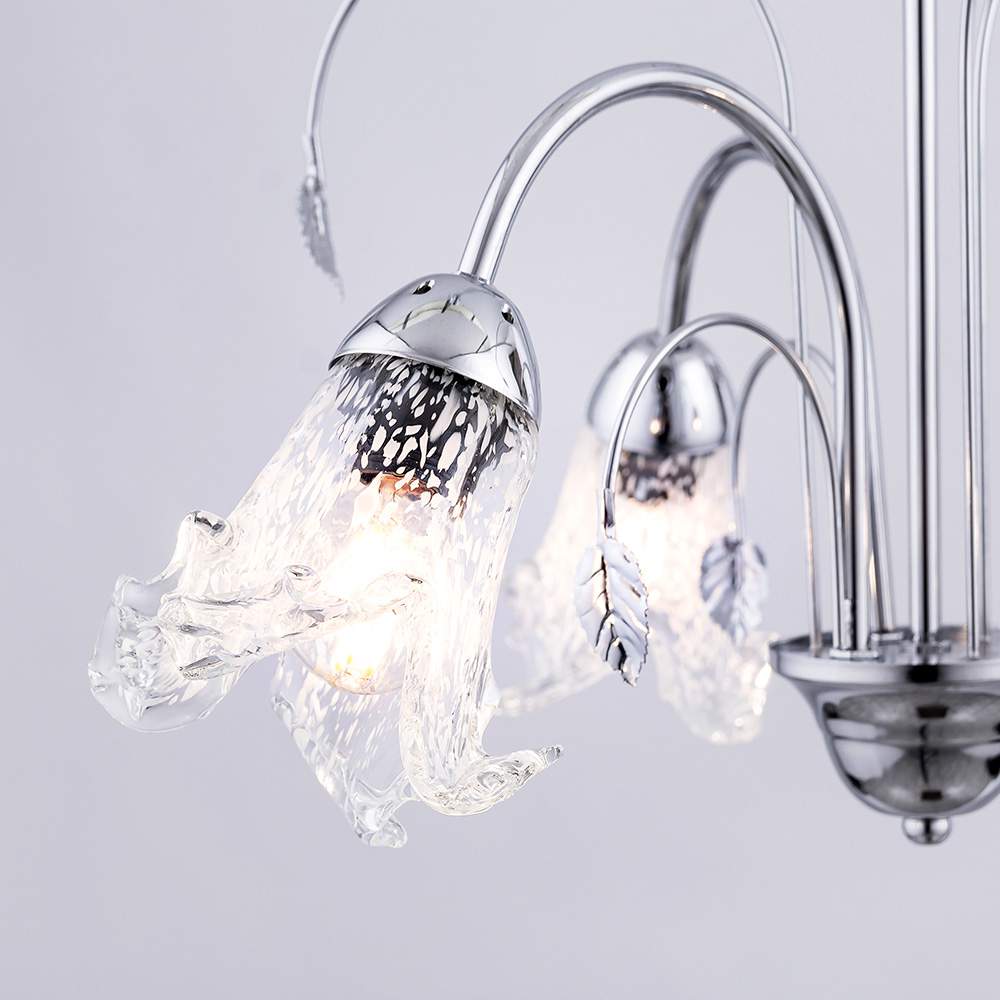 Φωτιστικό κρεμαστό 5 φώτα με διακοσμητικά φύλλα σε απόχρωση χρώμιο