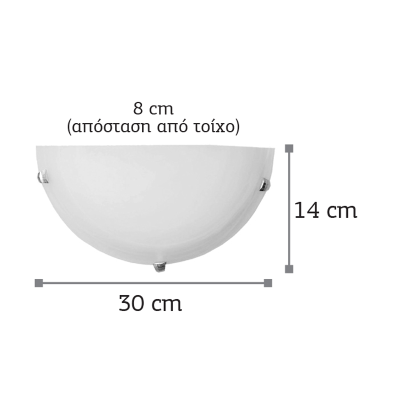 Πρόκειται για ένα επιτοίχιο φωτιστικό με χρώμιο λεπτομέρειες και λευκό γυαλί.