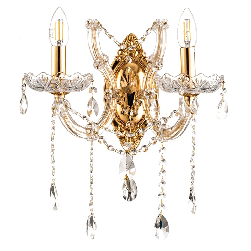 Επιτοίχιο φωτιστικό από χρυσό μέταλλο γυαλί και κρύσταλλα (43250-2Φ-Χρυσό)