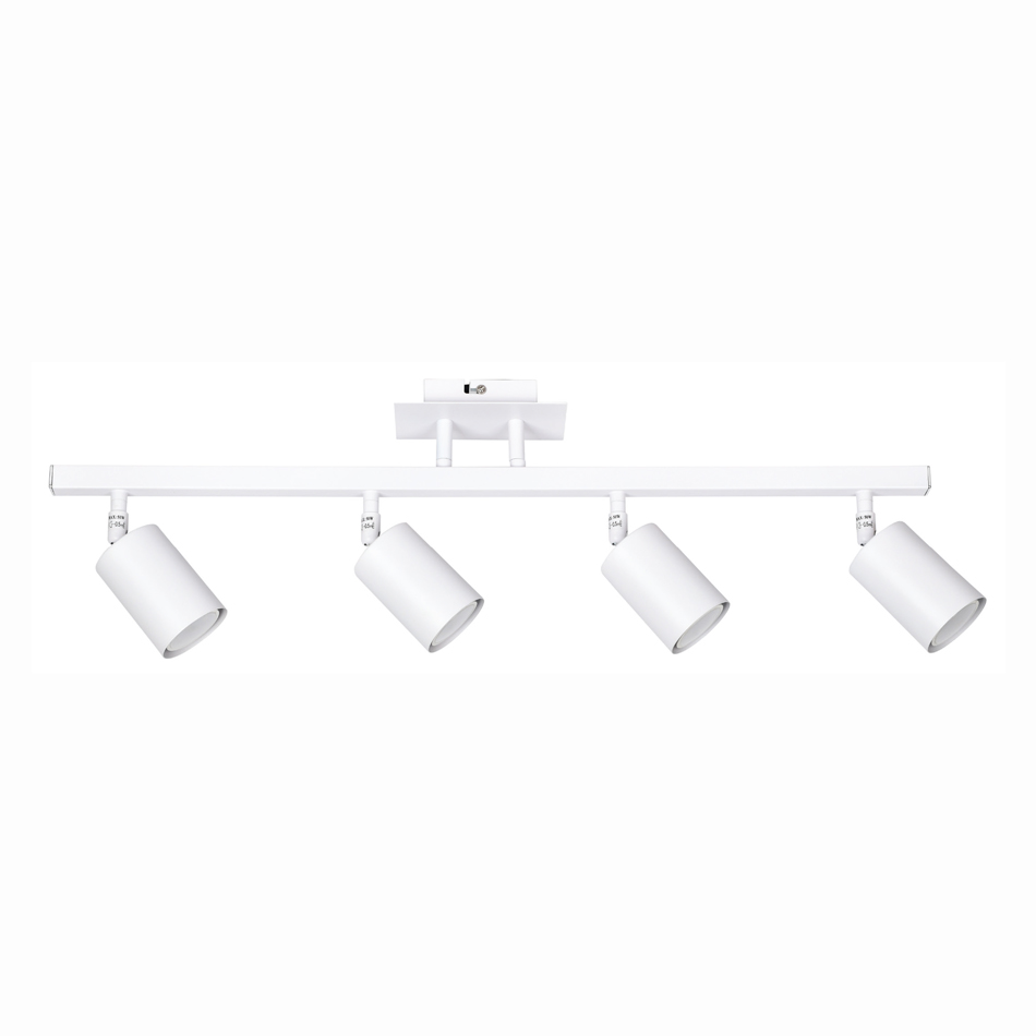 Πρόκειται για ένα μεταλλικό σποτ σε λευκή απόχρωση με τέσσερις λαμπτήρες. Το μεταλλικό καπάκι μπροστινό του μέρος κινείται προς οποιαδήποτε κατεύθυνση. Τοποθετείται και στην οροφή και στον τοίχο!