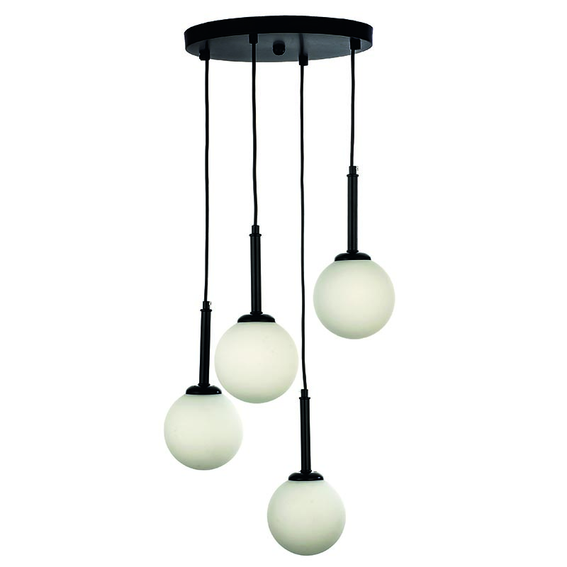 Κρεμαστό φωτιστικό από μαύρο μέταλλο και λευκή οπαλίνα (4514-4Φ-Μαύρο)