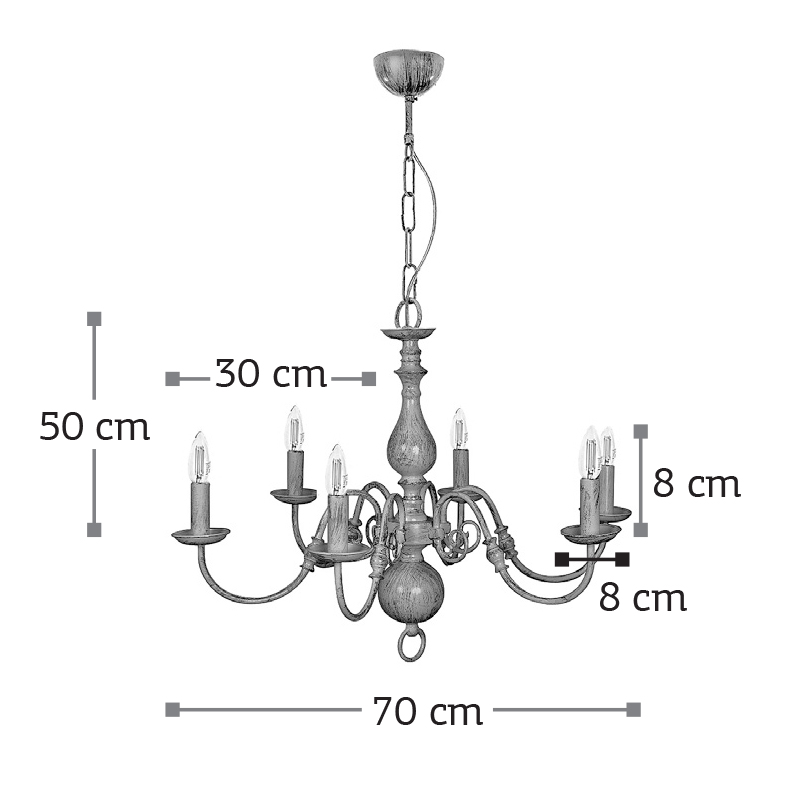 Κρεμαστό φωτιστικό από μέταλλο σε λευκή πατίνα (5311-6Φ-Λευκή Πατίνα)