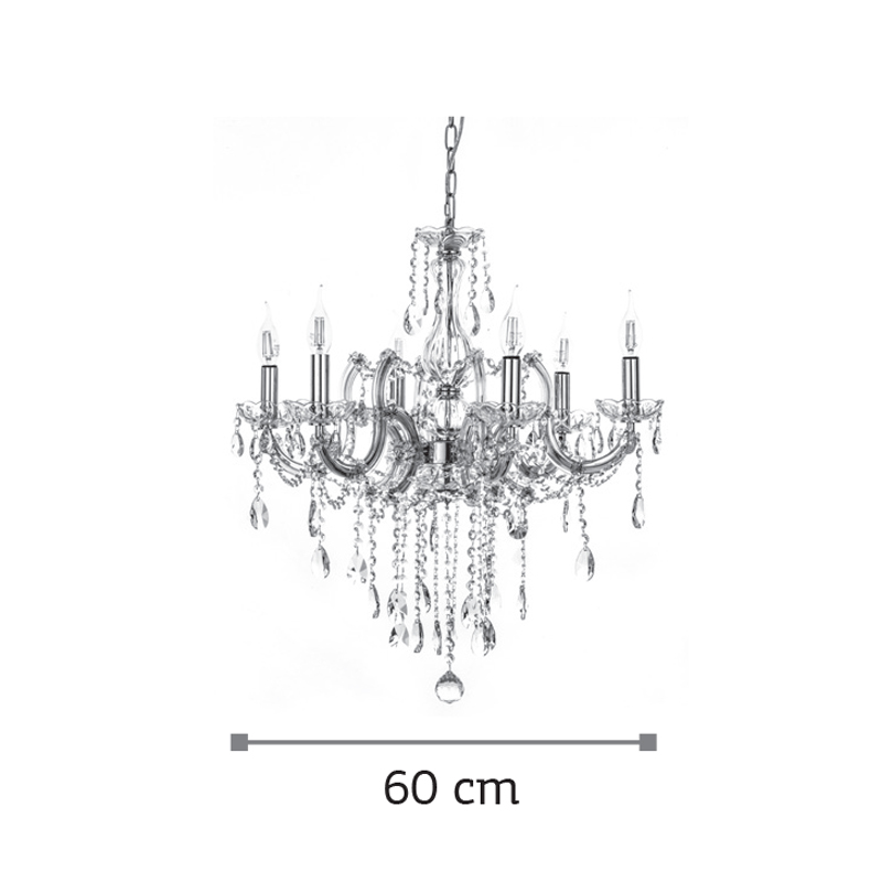 Κρεμαστό φωτιστικό από χρώμιο μέταλλο γυαλί και κρύσταλλα (5243-6Φ-Χρώμιο)
