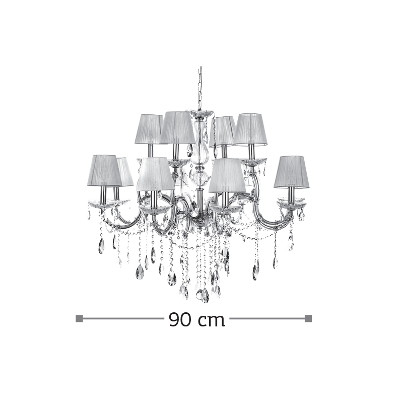 Πρόκειται για ένα κρεμαστό φωτιστικό με δώδεκα λαμπτήρες σε δύο επίπεδα των τεσσάρων και οκτώ αντίστοιχα.