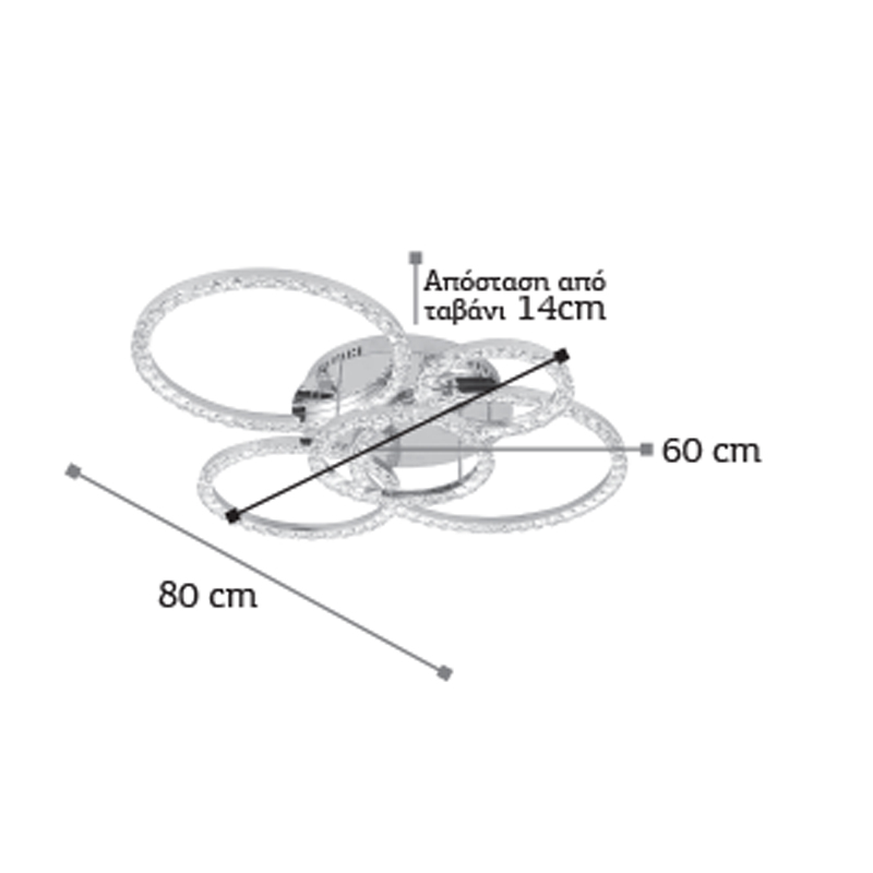 Φωτιστικό οροφής LED 72W 4000K χρώμιο μέταλλο και κρύσταλλα D:80cm (6038)