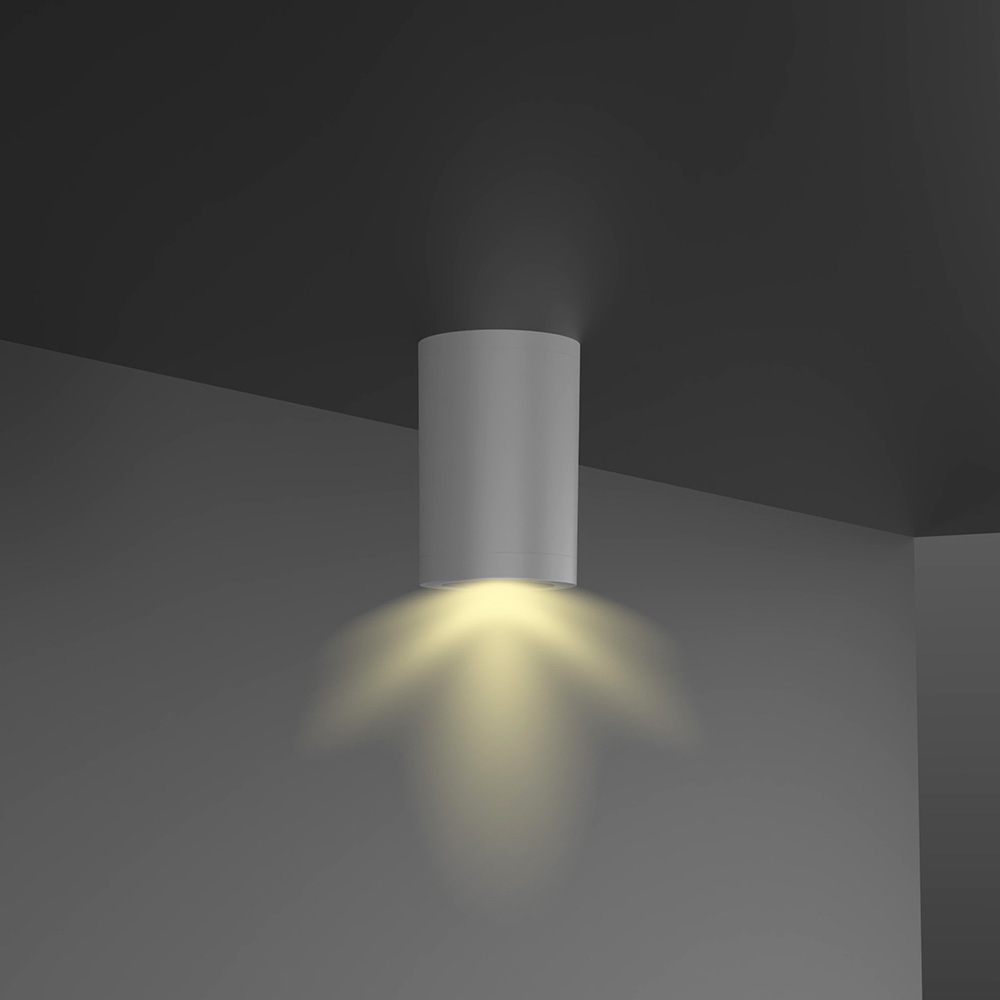 Σποτ οροφής από την οικογένεια Reindeer σε γκρί χρώμα. Το φως του διαχέεται ομοιόμορφα και με το minimal σχεδιασμό του ταιριάζει σε όλους τους εξωτερικούς χώρους.