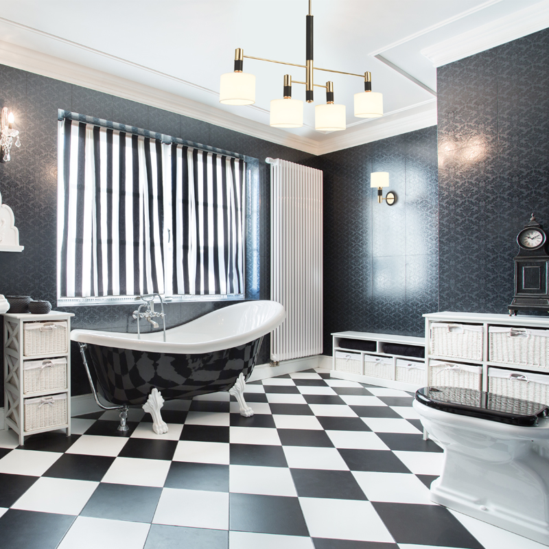 ΚΡΕΜΑΣΤΟ Φ/Σ 4ΧΕ14 ΧΡΥΣΟ/ΜΑΥΡΟ ΜΕΤΑΛΛΙΚΟ+ΛΕΥΚΑ ΑΜΠΑΖΟΥΡ D100XH83CM MIZAR της εταιρίας ACA Lighting.