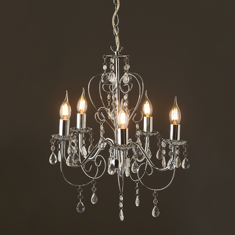 ΚΡΕΜΑΣΤΟ Φ/Σ 5ΧΕ14 ΜΕΤΑΛΛΙΚΟ ΧΡΩΜΙΟ-ΑΚΡΥΛΙΚΟ Φ43xH58cm DUMAS της εταιρίας ACA Lighting.