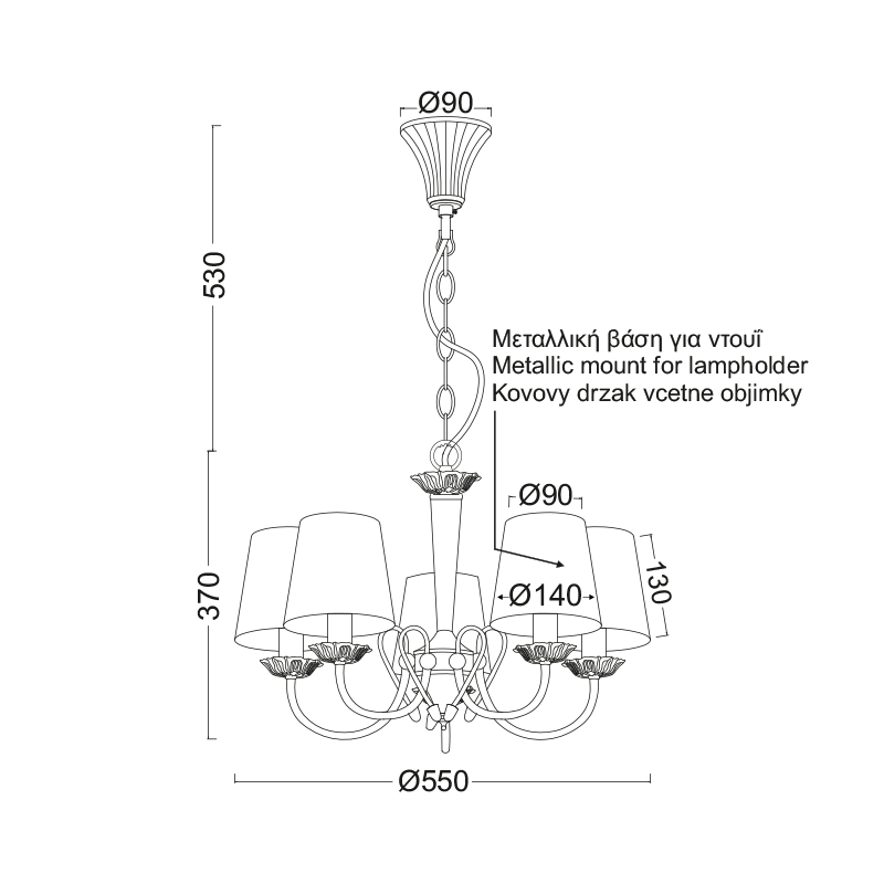 ΚΡΕΜΑΣΤΟ ΦΩΤΙΣΤΙΚΟ 5XE14 ΠΑΤΙΝΑ – ΓΚΡΙ ΑΜΠΑΖΟΥΡ Φ54cm AVIGNON της εταιρίας ACA Lighting.