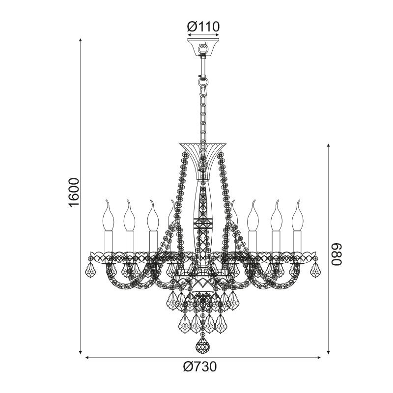 ΚΡΕΜΑΣΤΟ ΦΩΤΙΣΤΙΚΟ 8ΧΕ14 ΔΙΑΦΑΝΟ ΚΡΥΣΤΑΛΛΟ+ΧΡΥΣΟ ΜΕΤΑΛΛ Φ73ΧΗ160CM LILIUM
