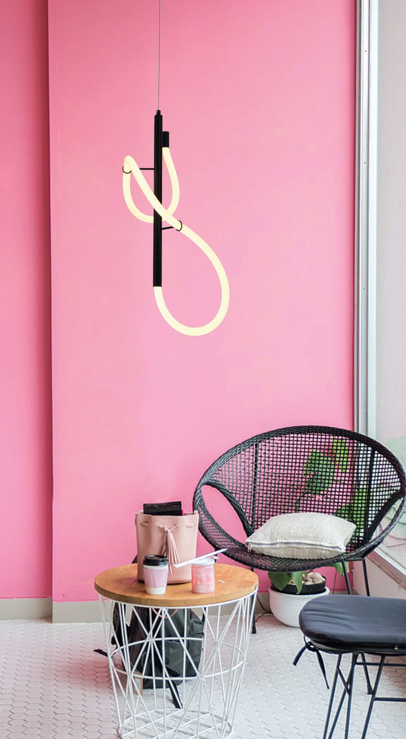 Το μαύρο μέταλλο συμπληρώνει τον led φωτιζόμενο και εύκαμπτο σωλήνα θερμής απόχρωσης.