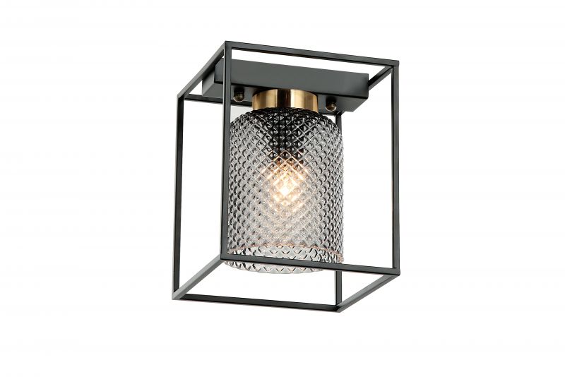 Φωτιστικό Οροφής με ανάγλυφο φυμέ γυαλί μαύρο χρώμα Zac