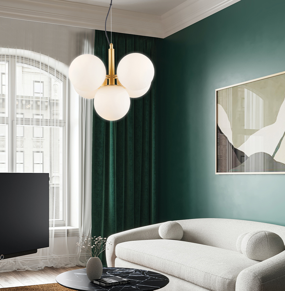 Κρεμαστό Φωτιστικό 5φωτο Ε14 Χρυσό με οπαλ μπάλες Nefeli